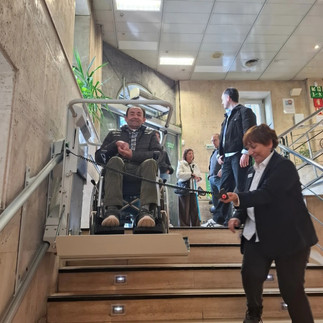 A nuestra llegada a las instalaciones de la calle Etxaide, fuimos recibidos por Niko, Rebeca y Ander, tres integrantes de la entidad que compartieron tanto la historia de la organización —desde sus inicios en plena Guerra Civil— como su labor actual en apoyo a personas ciegas y con baja visión. A lo largo de la visita, nuestro grupo pudo conocer de cerca cómo es el día a día de quienes forman parte de la ONCE, su esfuerzo, su capacidad de adaptación y, sobre todo, su resiliencia.